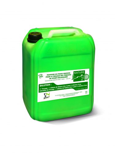 - Peinture liquide concentrée de haute qualité, à diluer pour le traçage des terrains de sports en herbe.