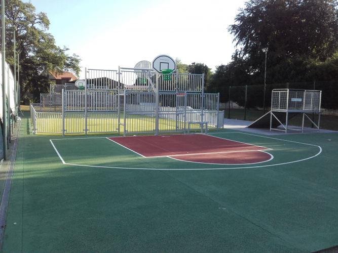 Réalisation : Multisports acier FREESPORT avec basket double jeux